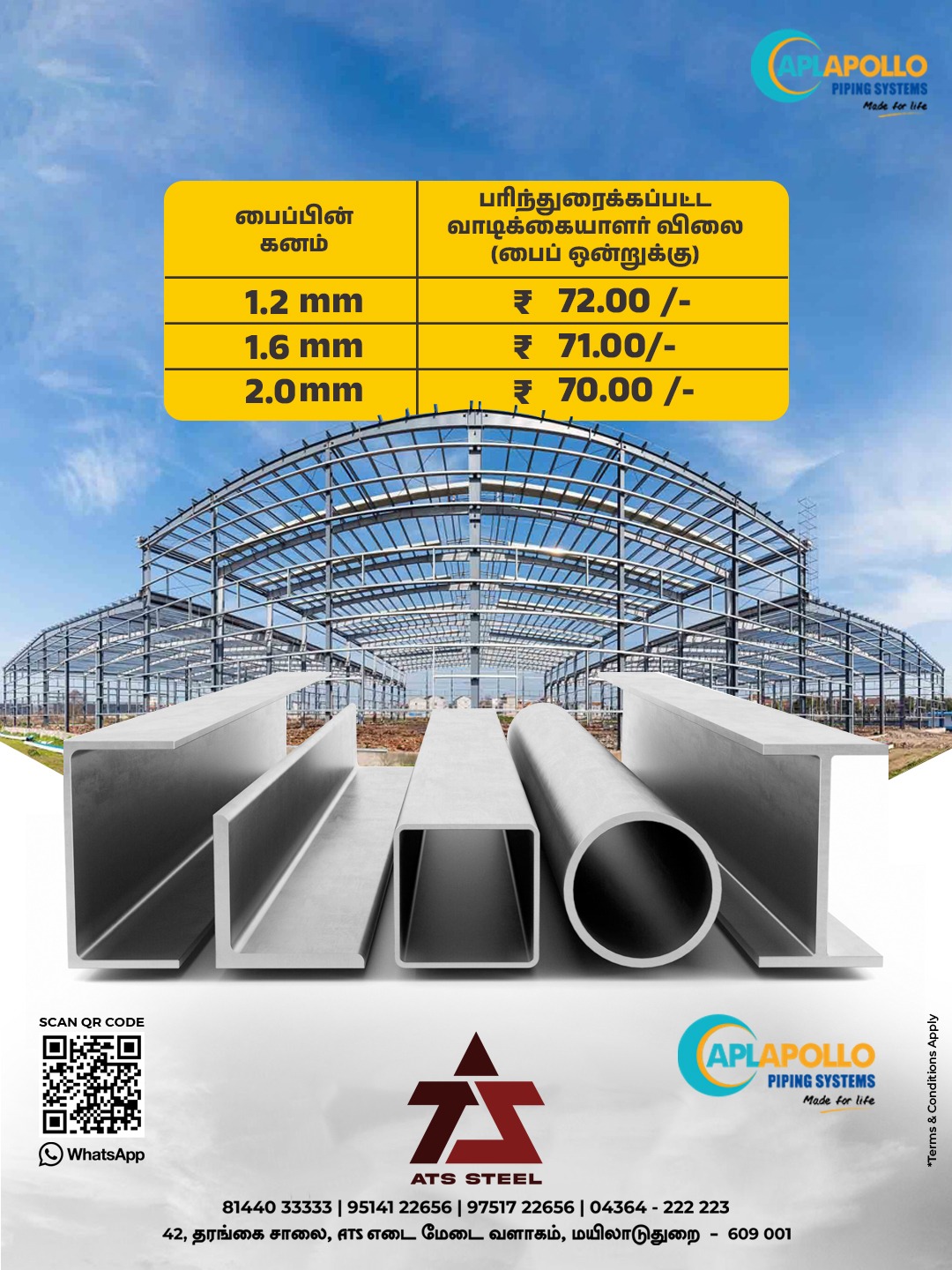 APL Apollo Tubes has been shaping the steel industry for over 35 years, establishing itself as a pioneer in producing a wide range of steel tube products including structural tubes, hollow sections, galvanized pipes, precision tubes, and pre-galvanized products. Recognizing the rapid growth of India’s infrastructure and construction sector and the need to build strong, sustainable structures for future generations, APL Apollo proudly delivers advanced steel tube solutions. Engineered for superior strength, durability, and corrosion resistance, these tubes offer an ideal solution for modern construction projects, ensuring long-lasting performance, safety, and structural reliability.